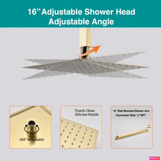 Shower Head High Pressure Ultra-Thin Square Shape Design 16" Brushed Gold Finish