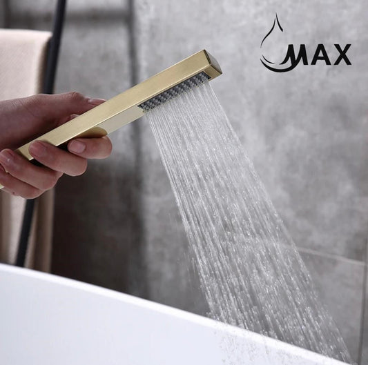 Tub Filler Faucet Floor Mounted Single Handle With Rough-in & Handheld Shower Brushed Gold Finish