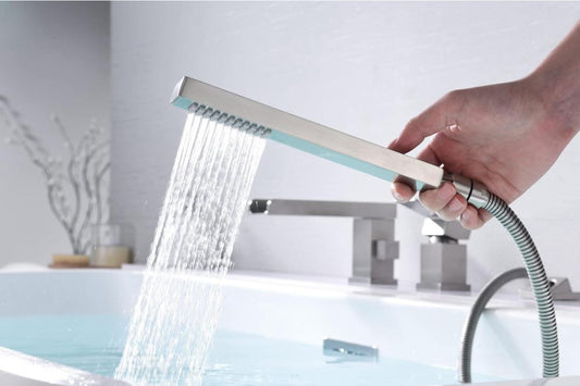 Roman Tub-Filler With Handshower Single Handle Waterfall Spout Deck Mounted Chrome Finish