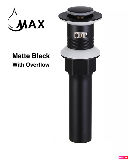 Small Cap Pop Up Sink Drain Assembly With Overflow Matte Black